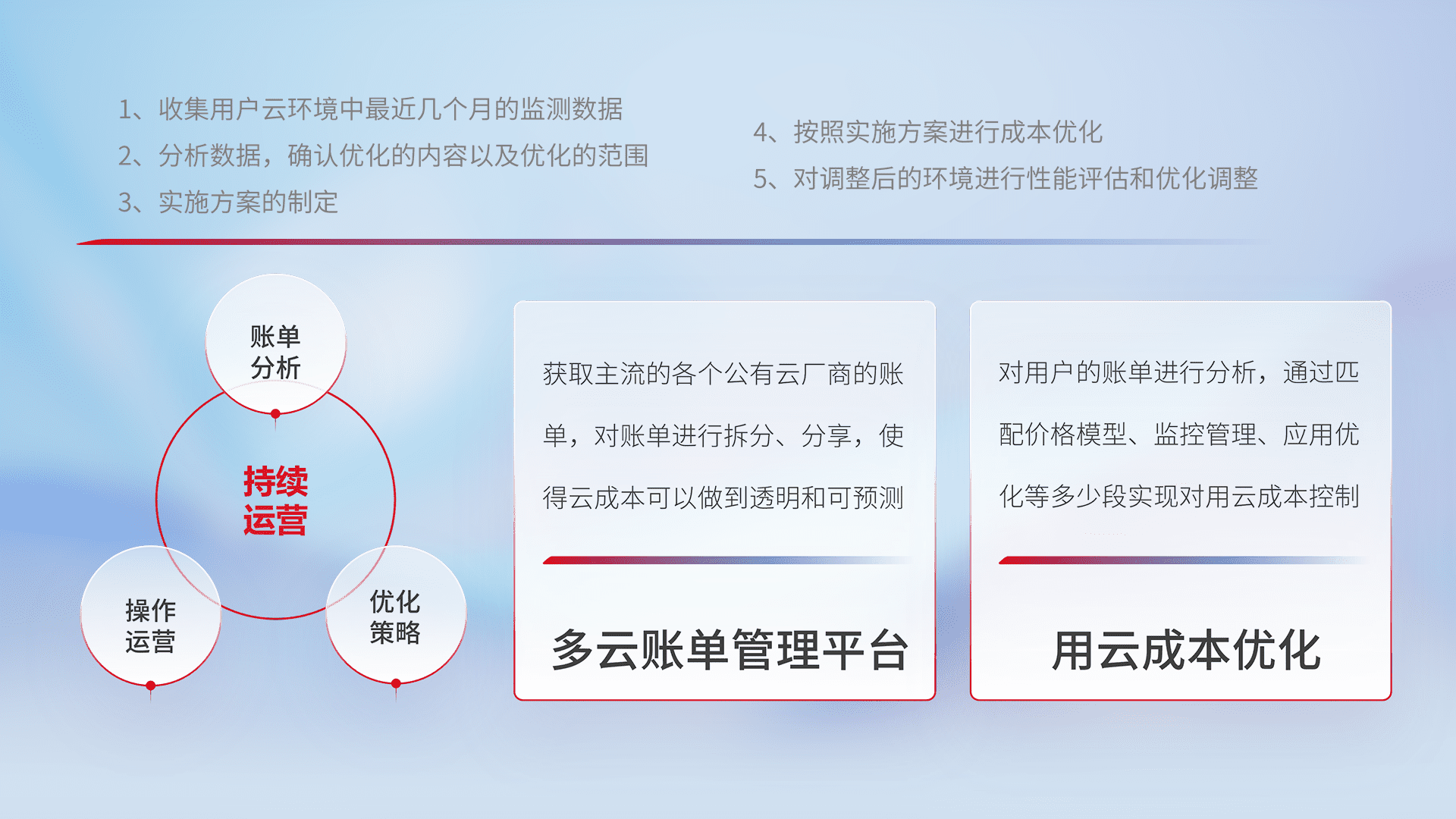 监控业务系统资源开销,,对资源的消耗精确计量,,实现费用的透明化管理,,,,不断提升资源使用率,,,,调整资源购买方式,,,降低资源费用成本,,,用云成本可预测、、、用云费用可优化,,,云资源配额有据可依。。